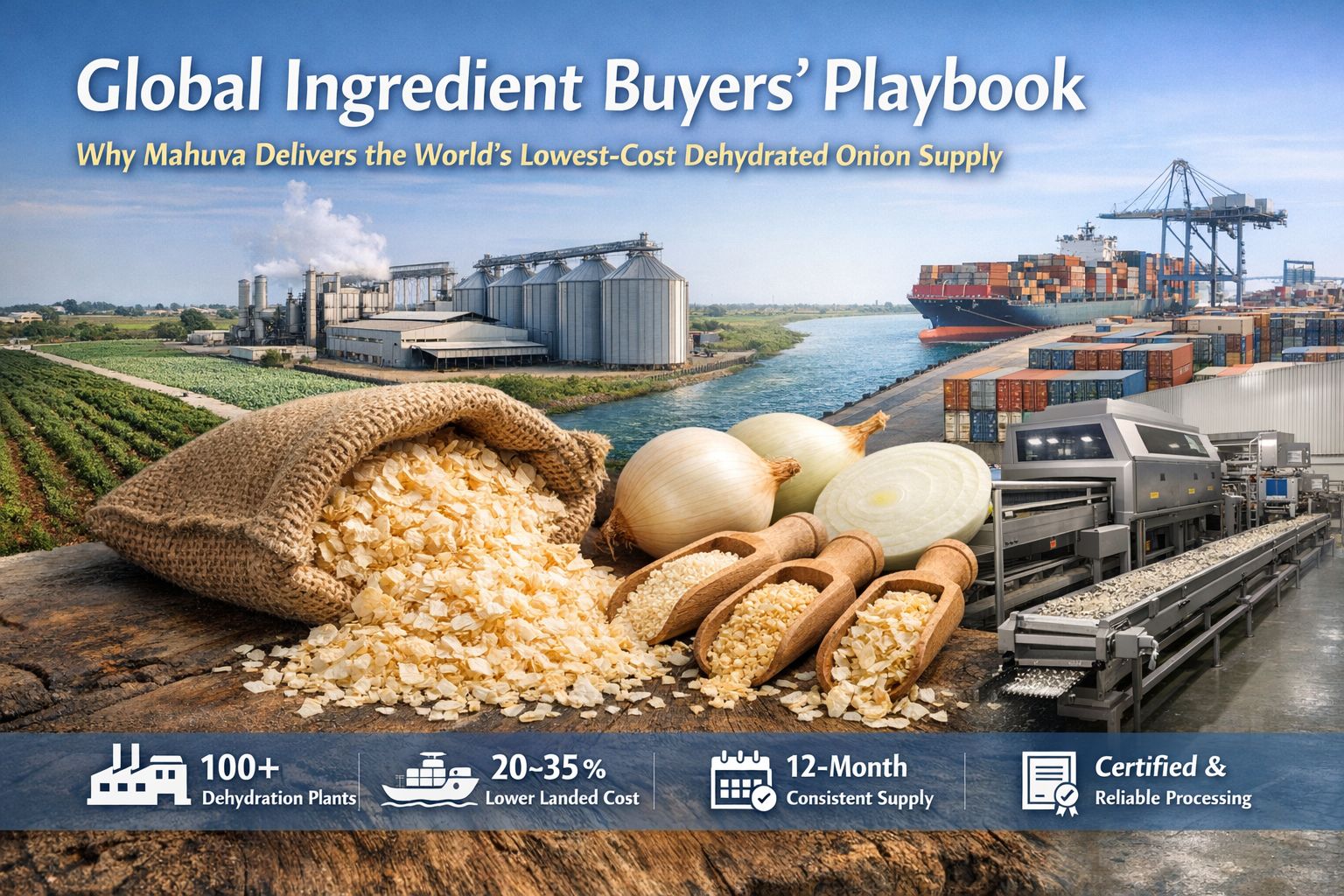 Global Ingredient Buyers’ Playbook: Why Mahuva Delivers the World’s Lowest-Cost Dehydrated Onion Supply