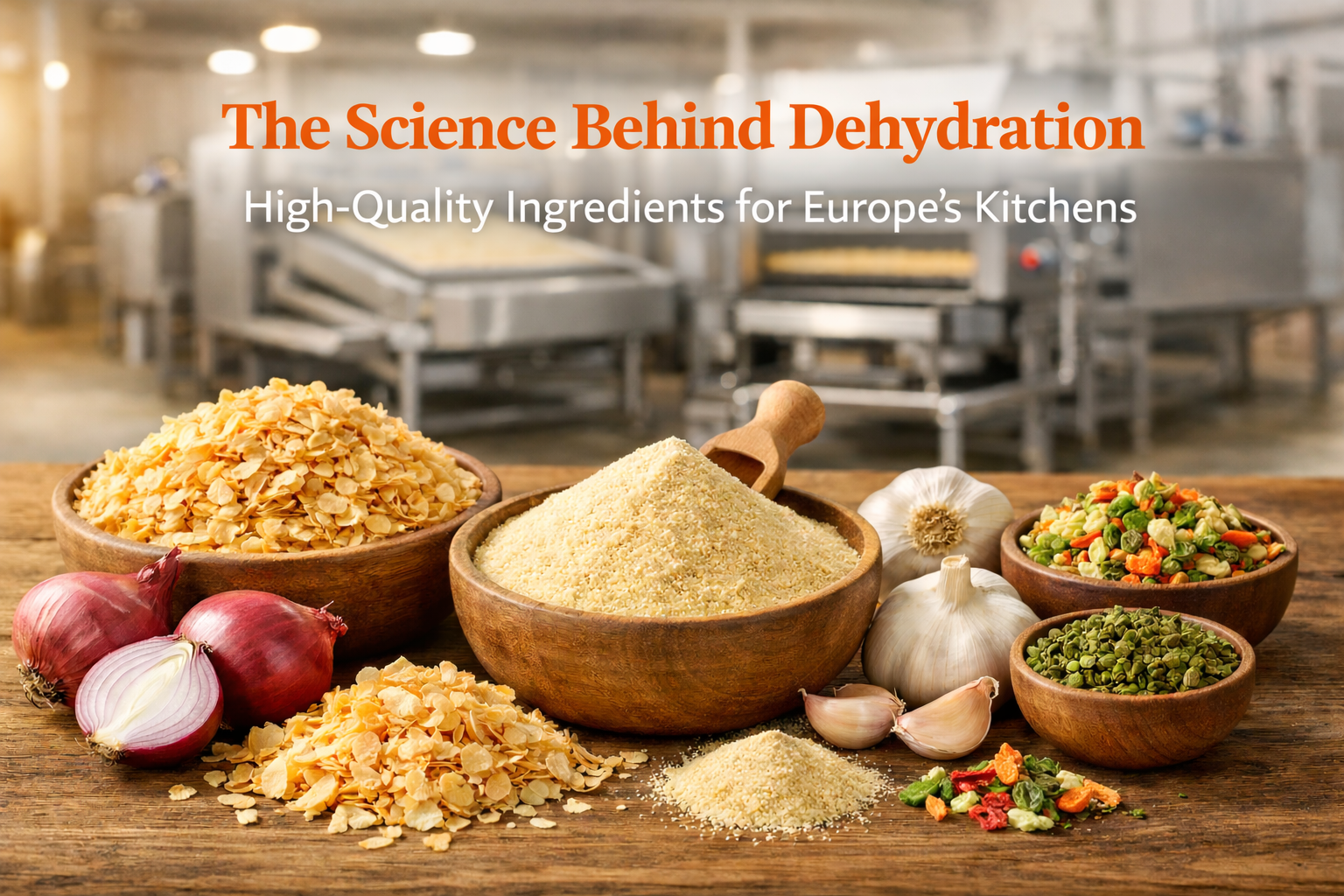 Dehydrated ingredients reduce waste, simplify inventory management, and offer consistent quality for recipes, sauces, seasonings, and ready-to-eat products. Our onion flakes, garlic powders, and dehydrated vegetables are especially popular among European markets where efficiency, flavor, and sustainability are top priorities.
